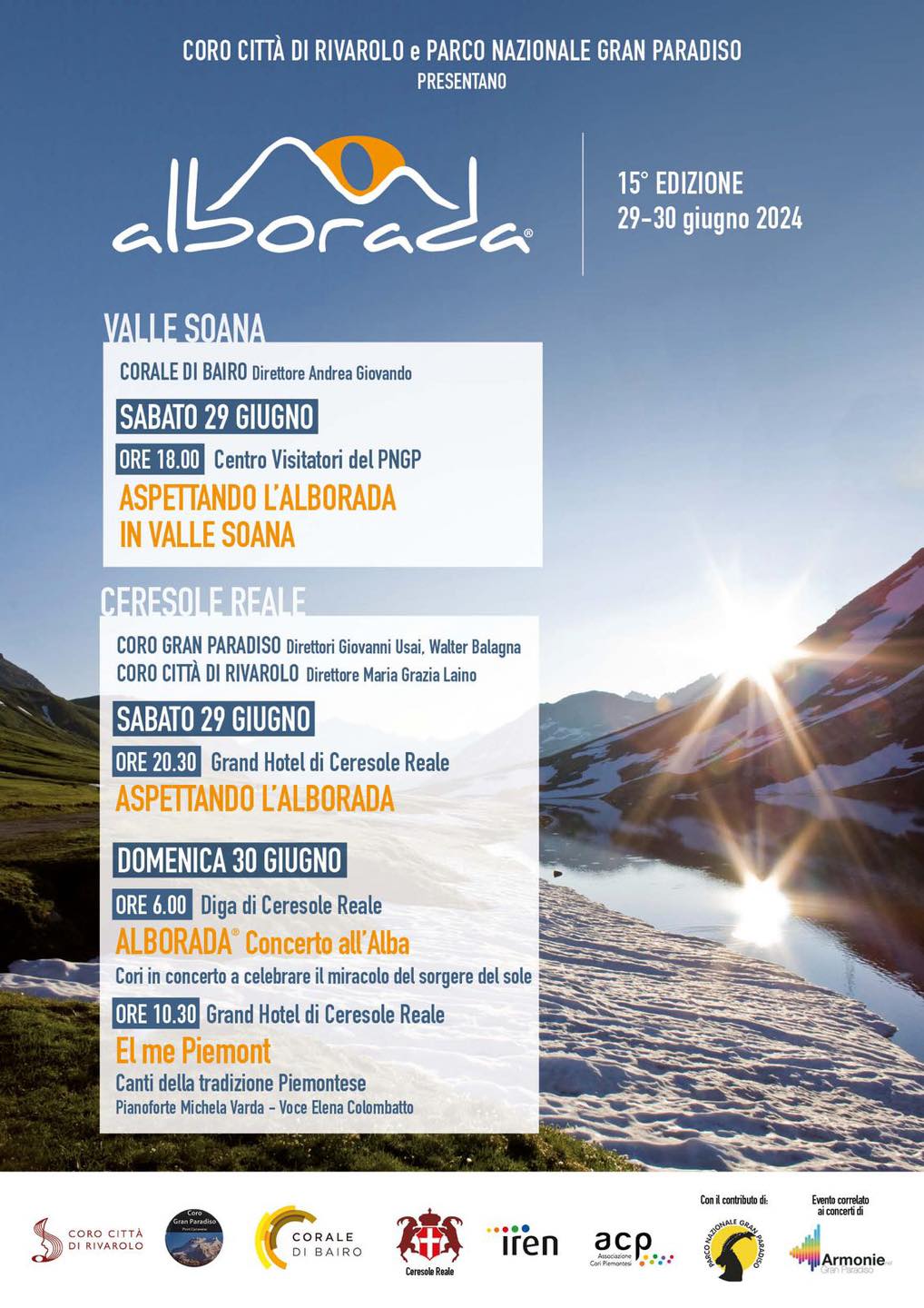 ore 6:30 presso la diga IREN di Ceresole Reale. Esecutori: Coro Città di Rivarolo APS e Coro Gran Paradiso di Pont Canavese.