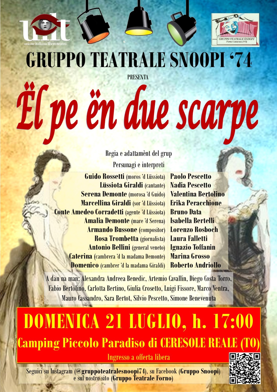 Alle 17 presso il Camping Piccolo Paradiso spettacolo teatrale presentato dal gruppo Snoopi '74