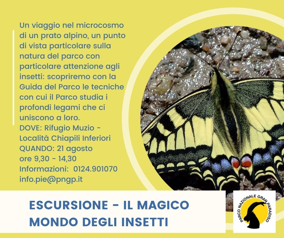 Un viaggio nel microcosmo di un prato alpino, un punto di vista particolare sulla natura del parco con particolare attenzione agli insetti. La guida del parco, in una breve passeggiata , ci incanterà raccontandoci gli adattamenti di questi straordinari esseri che hanno colonizzato ogni ambiente della Terra grazie alla loro capacità creativa. Scopriremo le tecniche con cui il Parco studia i profondi legami che ci uniscono a loro.