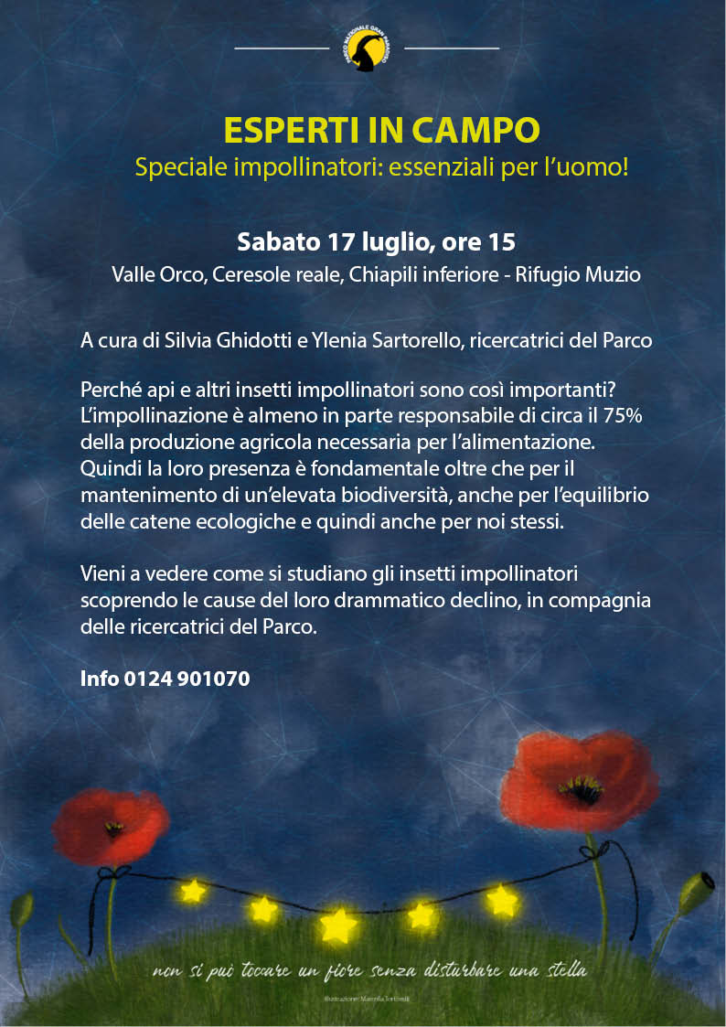 Incontri "speciali" svolti in natura a cura di ricercatori ed esperti dedicati ad approfondimenti su temi scientifici: questa settimana i ricercatori del parco nazionale Gran Paradiso, ci parleranno degli impollinatori e del loro importantissimo ruolo in natura.