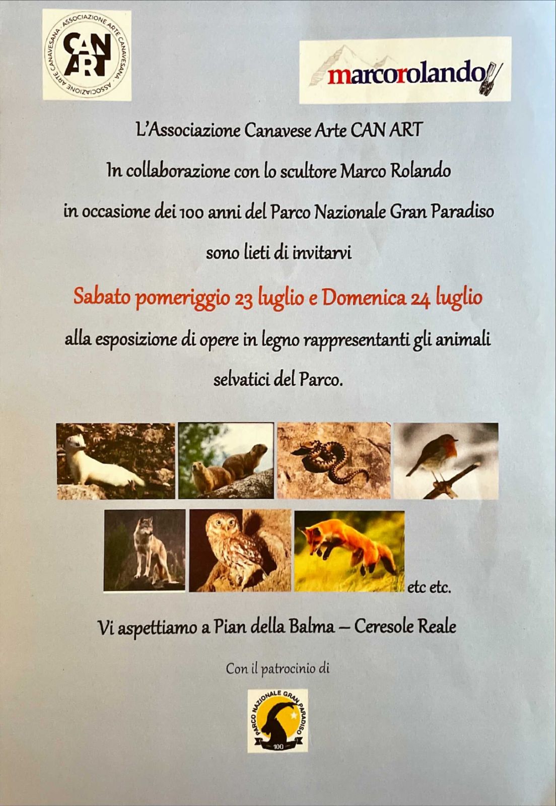 L'Associazione Canavese Art, in collaborazione con Marco Rolando, organizza una esposizione di oper in legno rappresentanti gli animali selvatici del Parco.