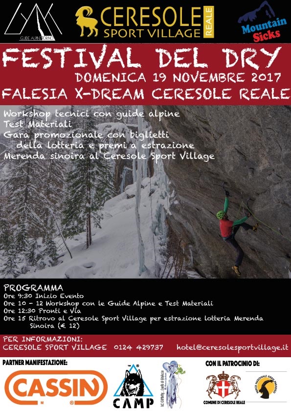 dalle ore 9.30 presso Falesia X-Dream Ceresole Reale Workshop tecnici con guide alpine - test materiali - gara promozionale