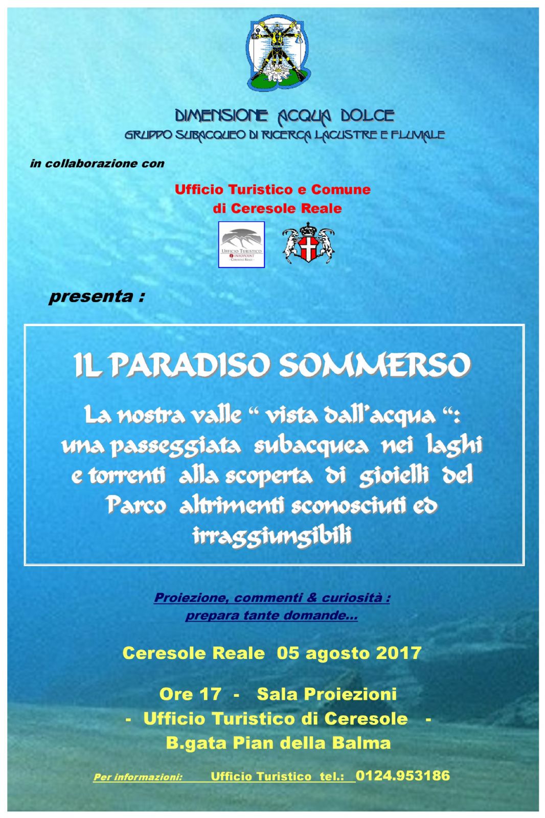 ore 17.00 presso Ufficio Turistico La nostra valle "vista dall'acqua: una passeggiata subacquea nei laghi e torrenti alla scoperta di gioielli del Parco altrimenti sconosciuti ed irrangiungibili - Proiezione