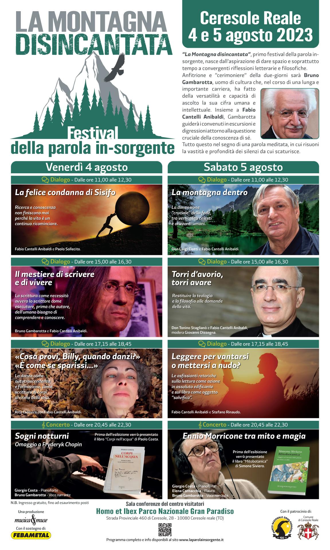 Il 4 e 5 agosto, presso la sala conferenze del centro visitatori Homo et Ibex di Ceresole Reale, si terrà “La montagna disincantata – festival della parola insorgente”, organizzato delle edizioni Atene del Canavese, con il patrocinio del Parco e del Comune di Ceresole Reale.