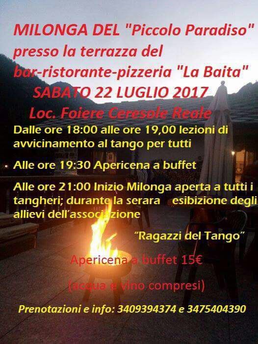 Presso ristorante pizzeria La Baita dalle ore 18 alle ore 19 lezione di avvicinamento al tango per tutti