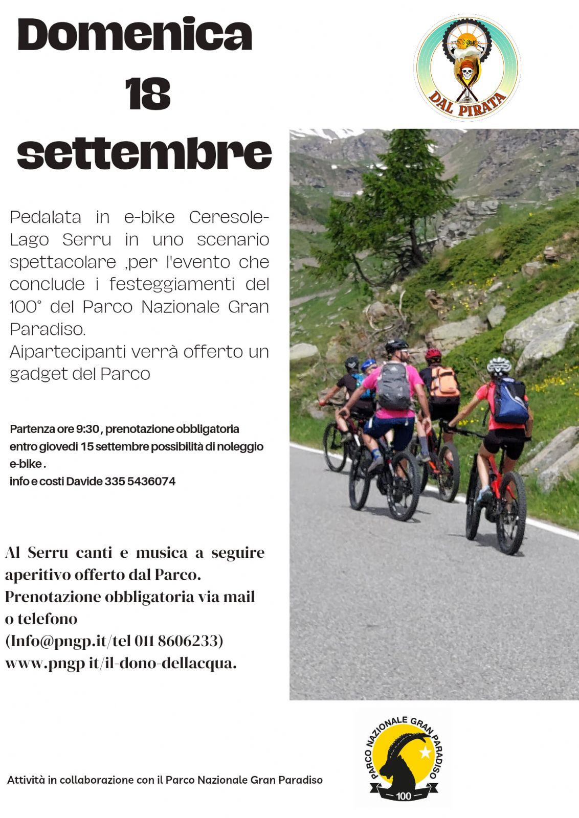 Pedalata in e-bike da Ceresole al lago Serrù in occasione dell'evento conclusivo dei festeggiamenti per il centenario del Parco Nazionale Gran Paradiso. Al termine aperitivo con prodotti tipici offerto dal Parco.