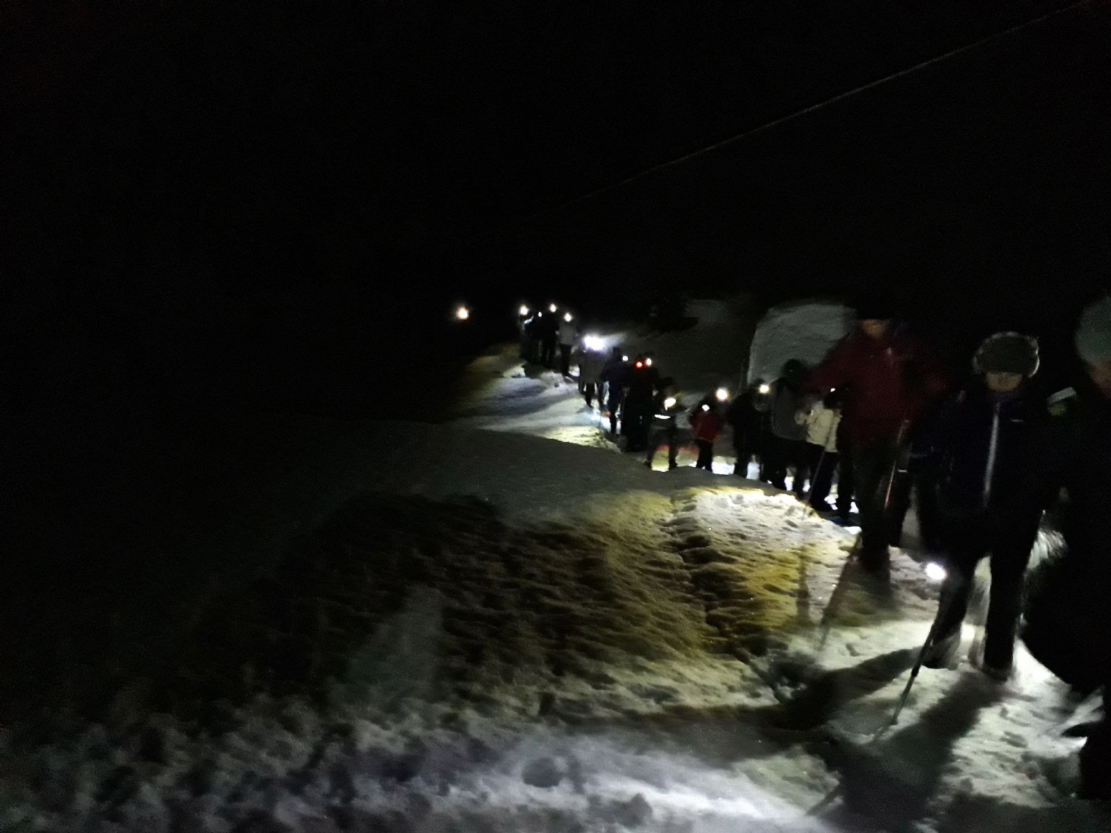 Attrezzatura: Abbigliamento a strati, uno zainetto, scarponcini da trekking o dopo-sci (vietati i moon boot), pila frontale o torcia elettrica; guanti, cappello, sciarpa, thermos con bevanda calda …