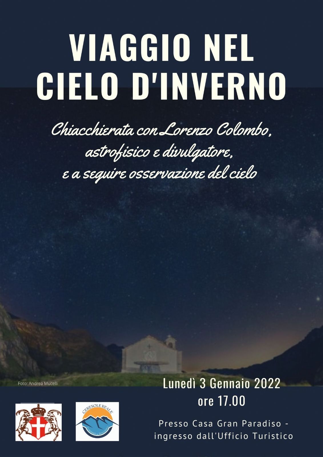 Chiacchierata con l'astrofisico e divulgatore Lorenzo Colombo e, a seguire, osservazione del cielo invernale.