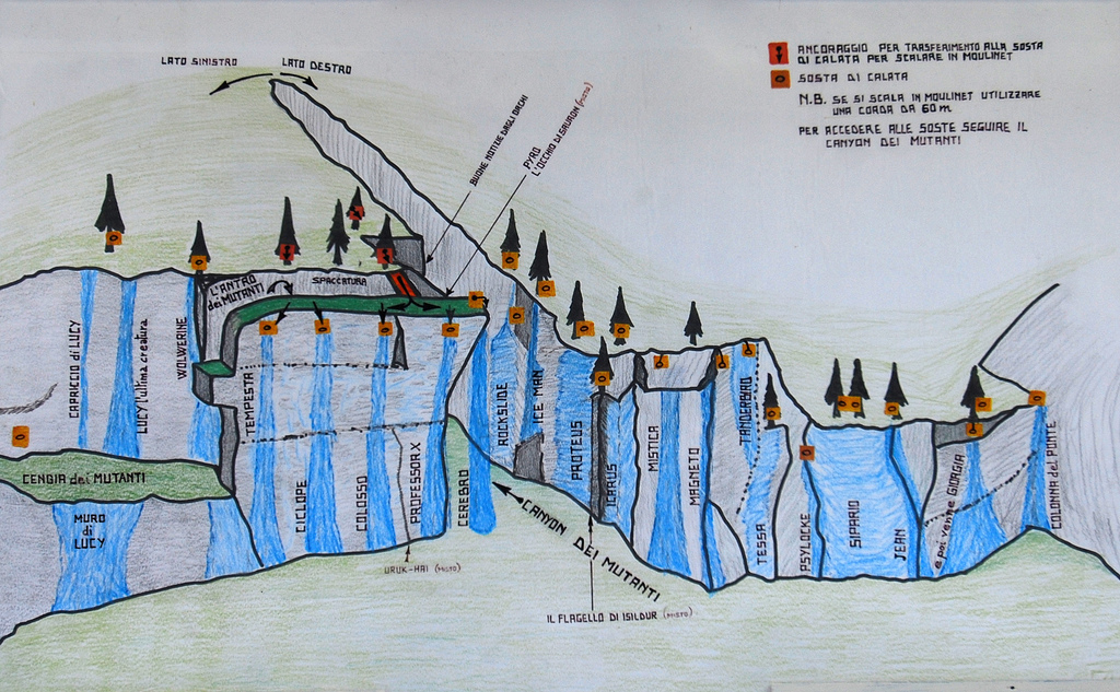 località Chiapili di Sopra nei pressi sbarra chiusura strada, partenza in località Chiapili di Sopra. Difficoltà D, monotiro. Esposizione Sud [nel periodo invernale la strada è chiusa in località Chiapili di Sotto, pertanto il tragitto fino alla località di partenza è da effettuarsi a piedi]